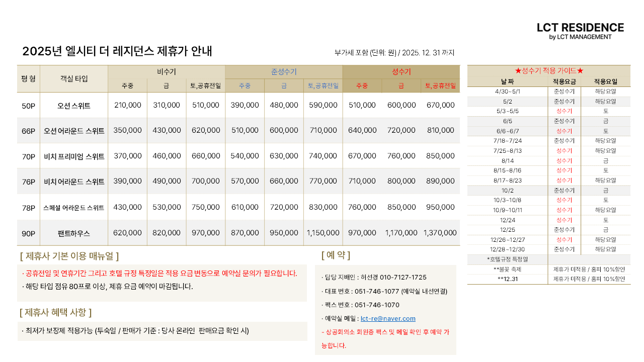 -엘시티매니지먼트 : ☎051-746-1077 (예약실 내선 연결)